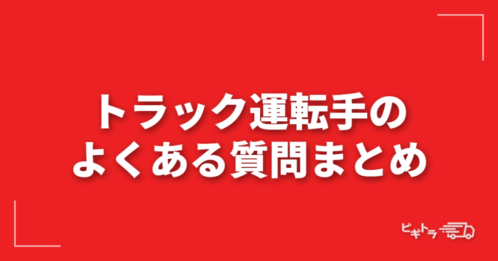 トラック運転手のよくある質問まとめ【未経験・転職・免許・年収を徹底解説】
