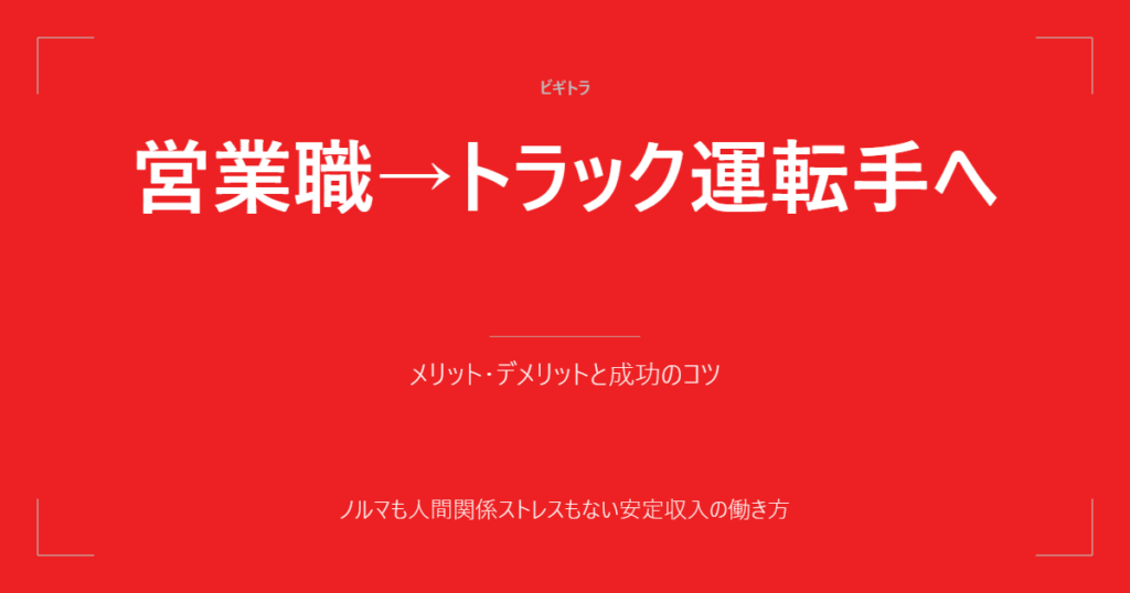 営業職から転職してトラック運転手になるには?メリット・デメリット・成功のポイント